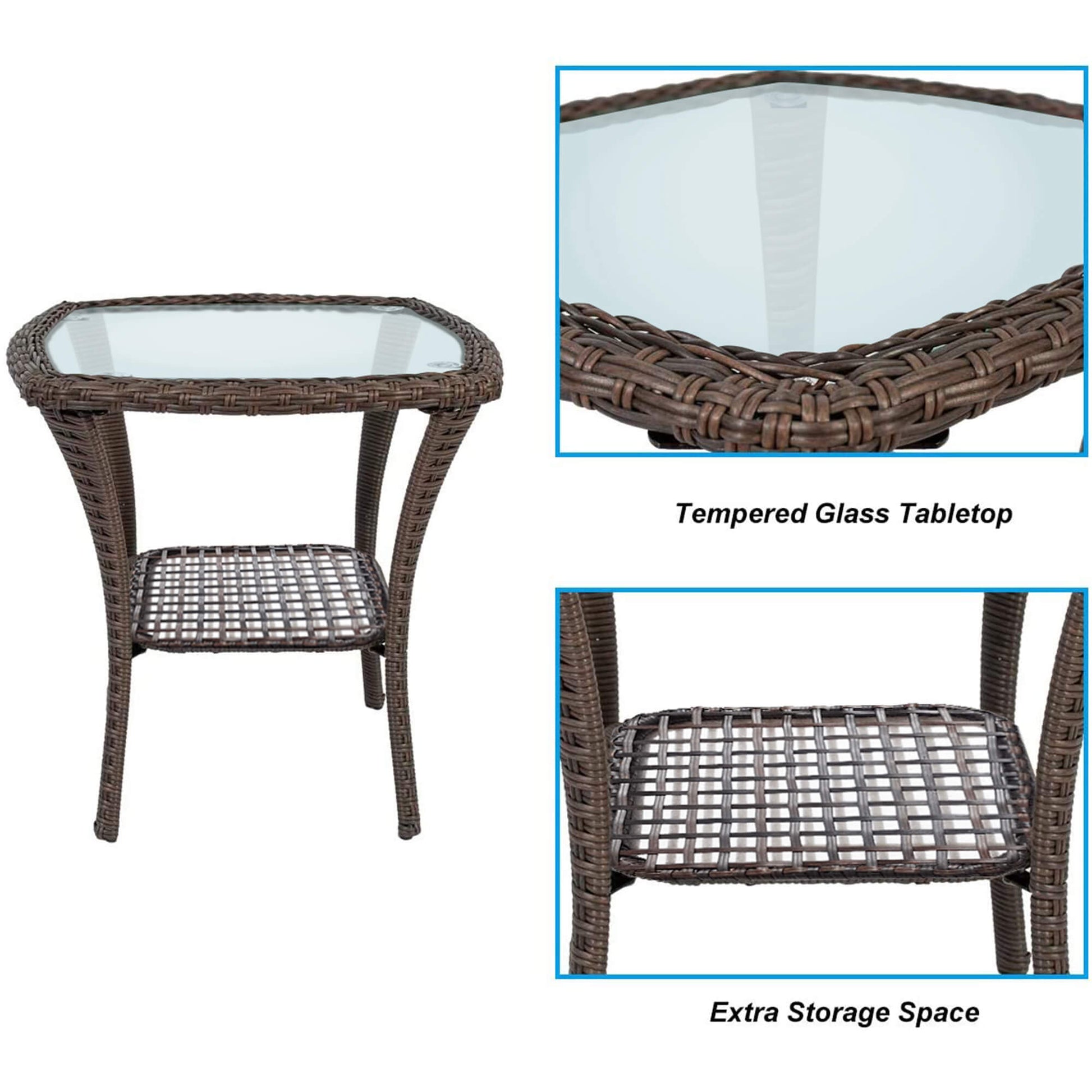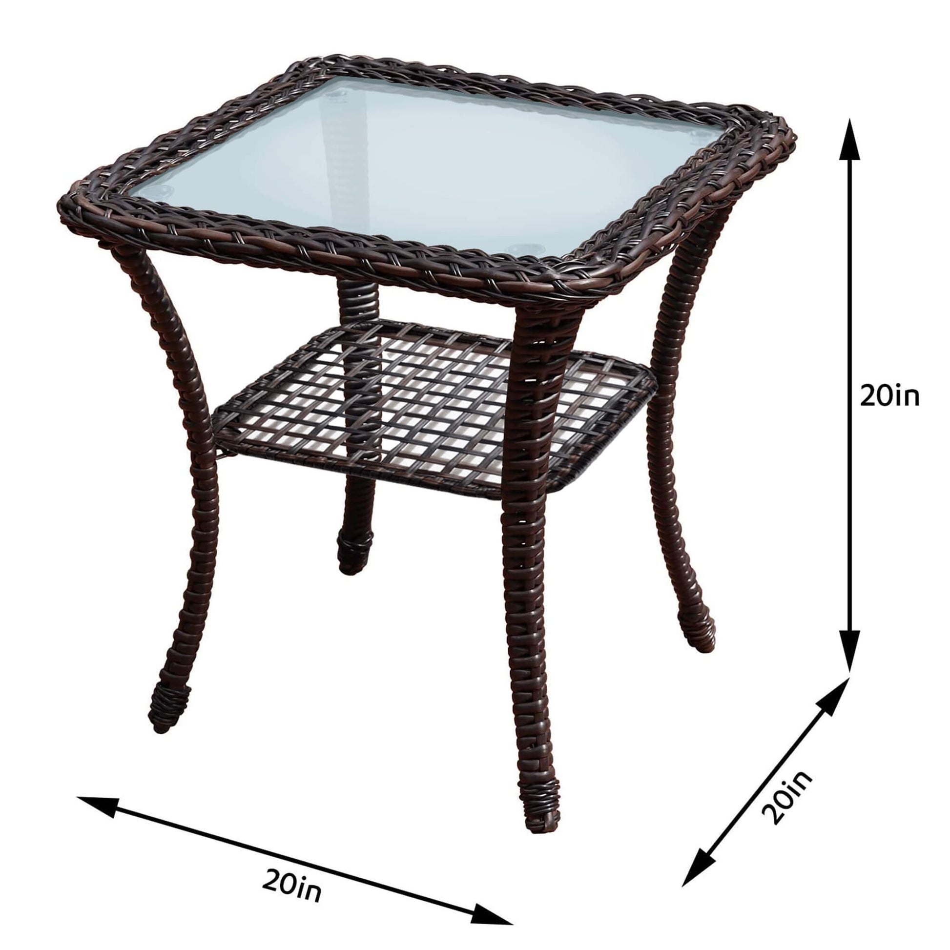 Outdoor Resin Wicker Glass Top Side Coffee Table