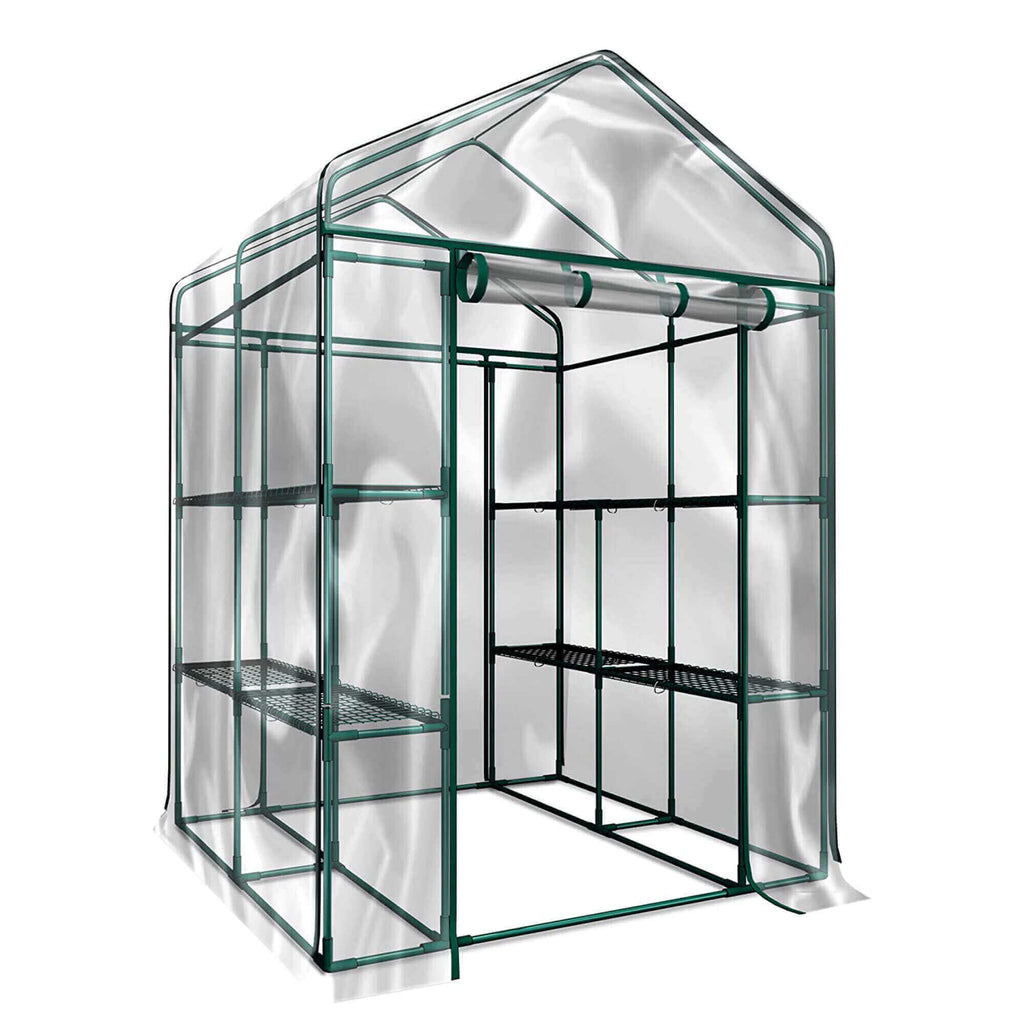 Arttoreal Walk-In Garden Greenhouse/Outdoor 56" x 56" x 76" Green House with 2 Tiers 8 Shelves Roll-Up Door Gardening Rack