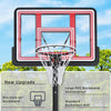 The basketball hoop and goal feature a 44" plexiglass edge-protected design back panel (back panel size: 43.3"x29. 6") and shock-absorbing bumpers. The basketball hoop has multiple screws to fix the backboard and an anti-rust spindle to ensure that the basketball goal is more durable and sturdy for indoor or outdoor use. The main rod of the outdoor basketball stand is treated with smooth plastic spraying, which can prevent rust, oxidation and paint, and the thickened metal bracket can be used for a long time.
