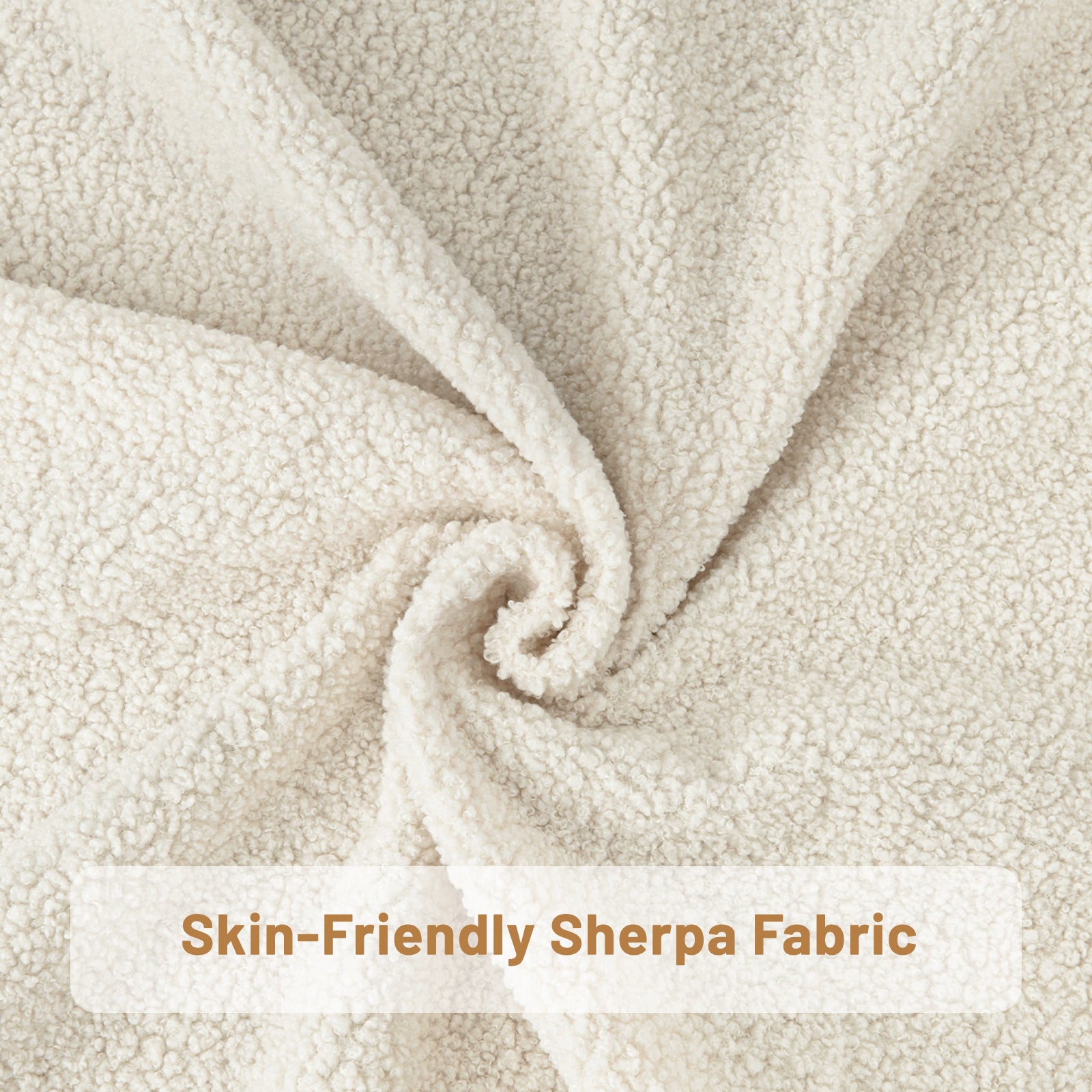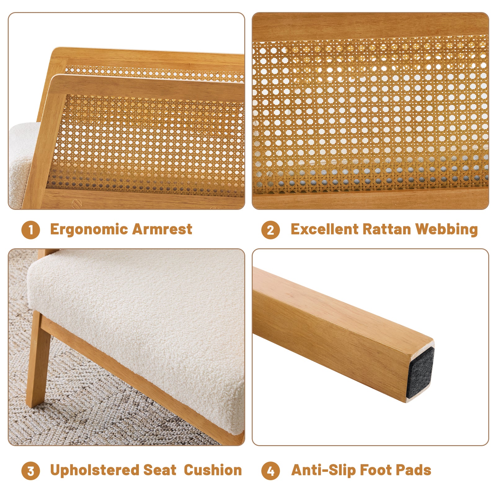 Mid-Century Modern Chair Upholstered in Sherpa Fabric Lounge Armchair, Solid Wood Frame and Upholstered, Suitable for Living Room, Bedroom, Balcony, Ivory White